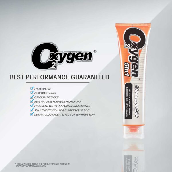 ออกซิเจน มาสสาสเจล เป็นเจลหล่อลื่นตัวแรกของโลกที่ผลิตจากส่วนผสมของอาหารและมีความปลอดภัยเพียงพอ ดังนั้นจึงไม่ส่งผลกระทบใดๆ ต่อสุขภาพ เมื่อมีการนำเจลเข้าสู่ร่างกายในปริมาณที่เหมาะสม